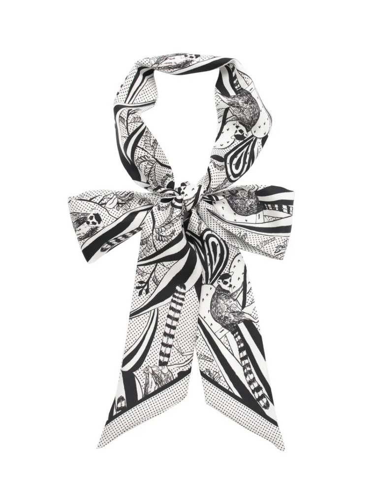 "Madagascar" Silk Twill Skinny Scarf - Black & White