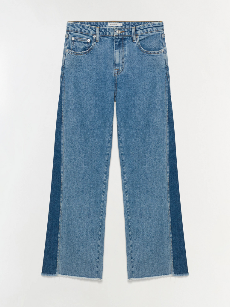 A straight leg jean by Simkhai with classic 5-pocket construction and a contrasting tone denim side stripe.