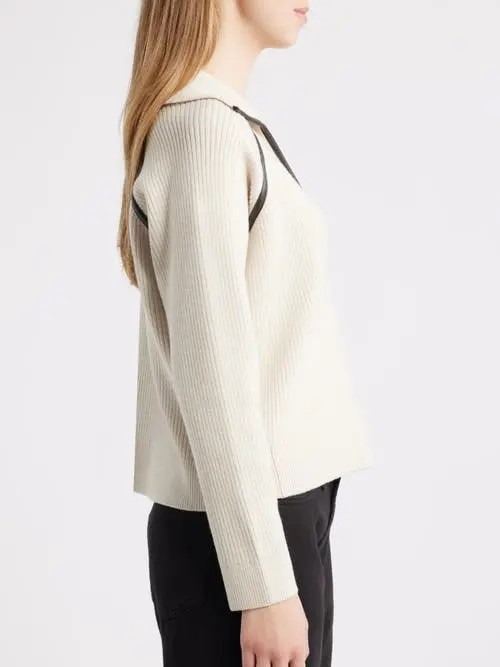Faux-leather piping trims the collar and yokes of this polo knit by Rag & Bone in a ribbed stitch from wool-blend yarn eased with a hint of stretch.