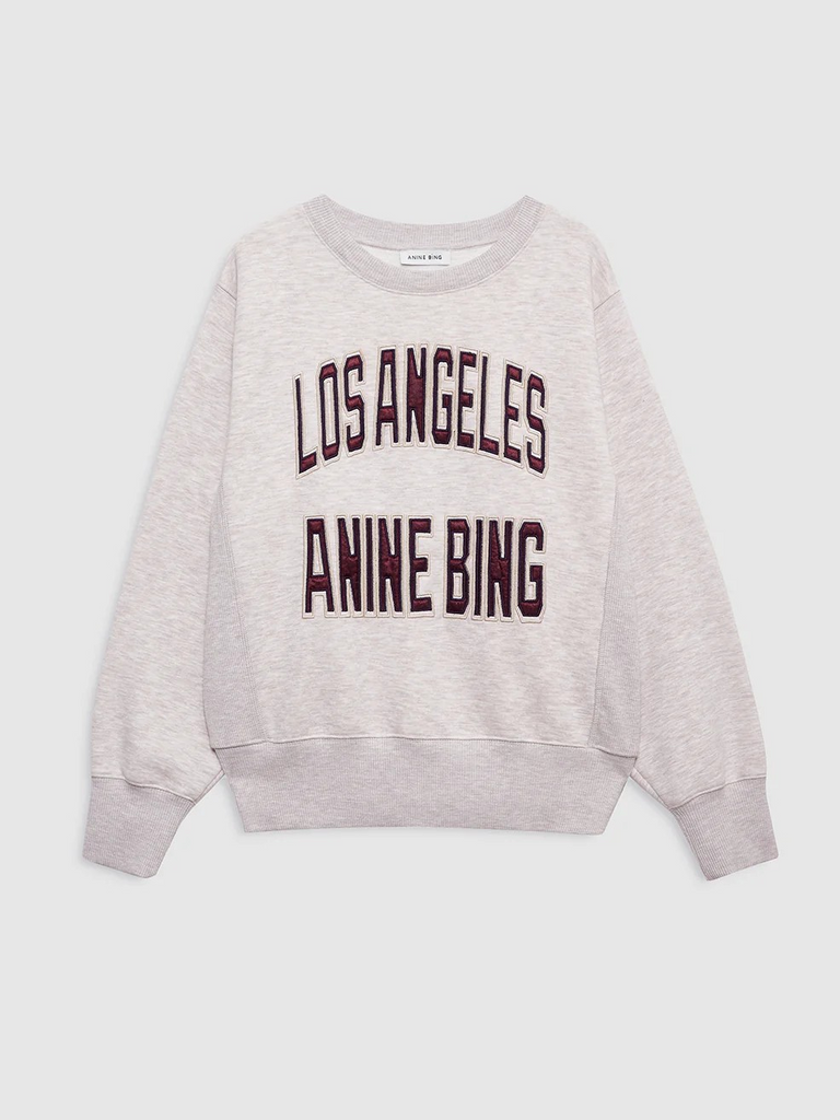 The Harry is a pullover made from midweight a cotton blend in an oatmeal wash. This relaxed casual features an ANINE BING letterman patch graphic at the chest.