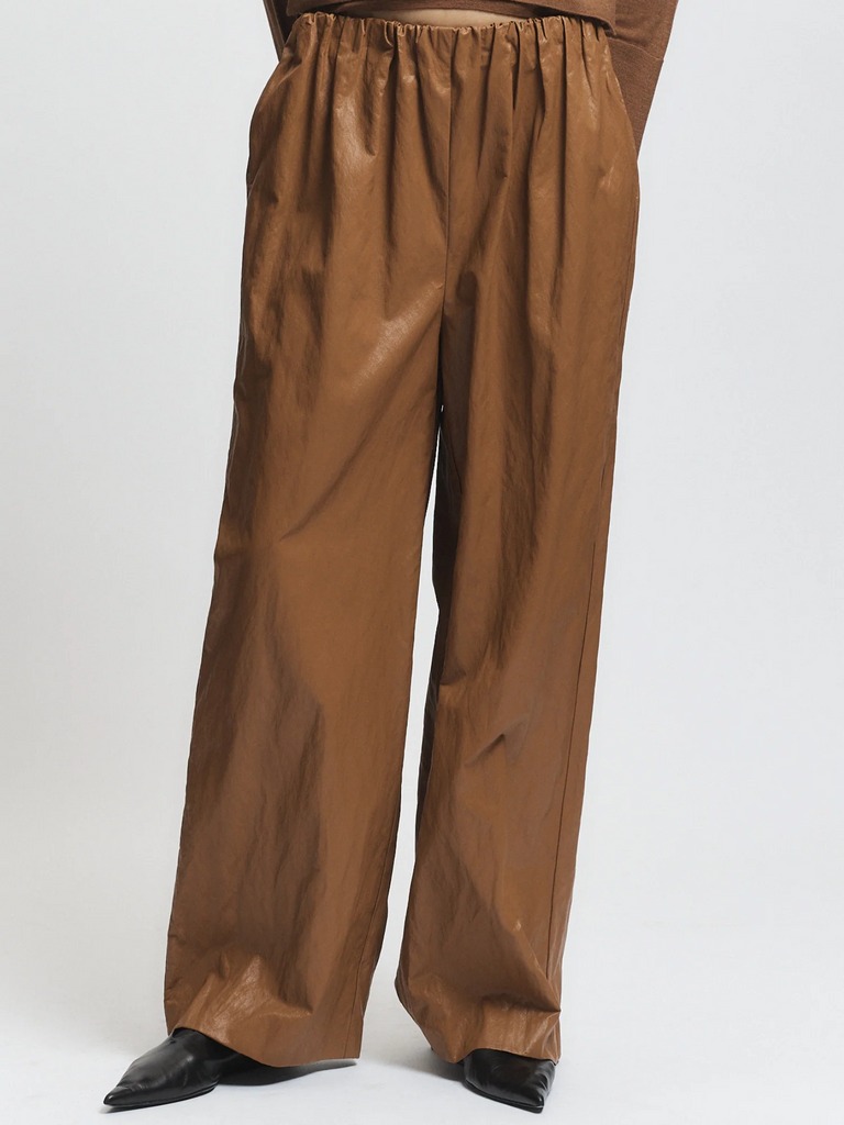 Introducing the Jakob Pull On Pant by Saint Art - a statement pant that effortlessly exudes luxury. The coated twill fabric and soft brushed interior add an elevated texture, while the pull on design offers easy, sophisticated styling. Elevate your wardrobe with this exclusive piece.