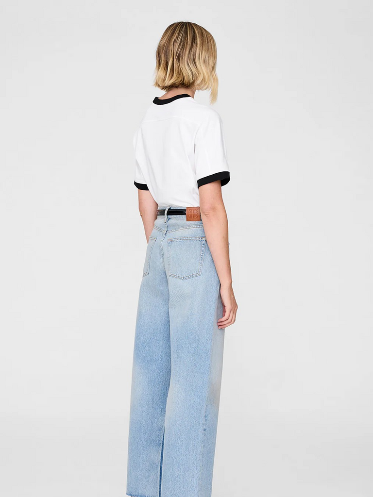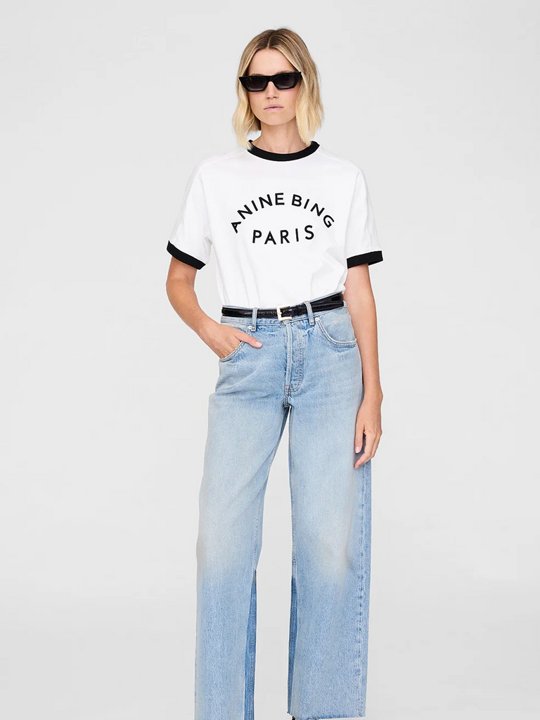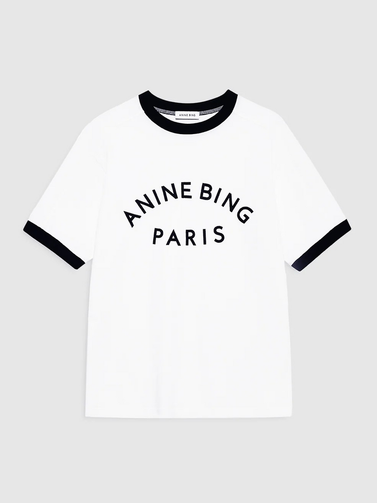 A structured T-shirt by Anine Bing made from heavyweight 100% cotton jersey in ivory with a contrast black collar and cuffs.