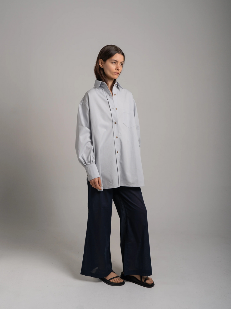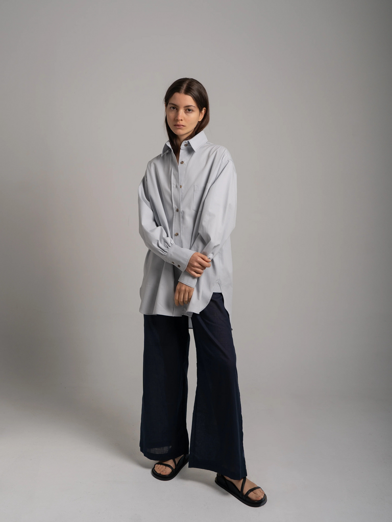 Is there anything that makes you feel sexier or cooler than a crisp, oversized button down shirt? For us, the answer is no. It’s just the right length and width for that effortless, modern look while still feeling elegant. We love this piece by SLOAN open over The Bra or a tank. Wear it as a mini dress or buttoned up to the top and tucked in to the trousers for a polished look. The opportunities to incorporate this piece in to your wardrobe are endless.