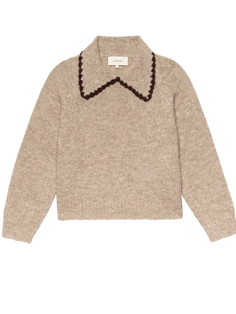 This carryover favorite by The Great returns with its signature charm: a soft crochet collar, ribbed trims, and a cozy body spun from plush yarn. Finished with