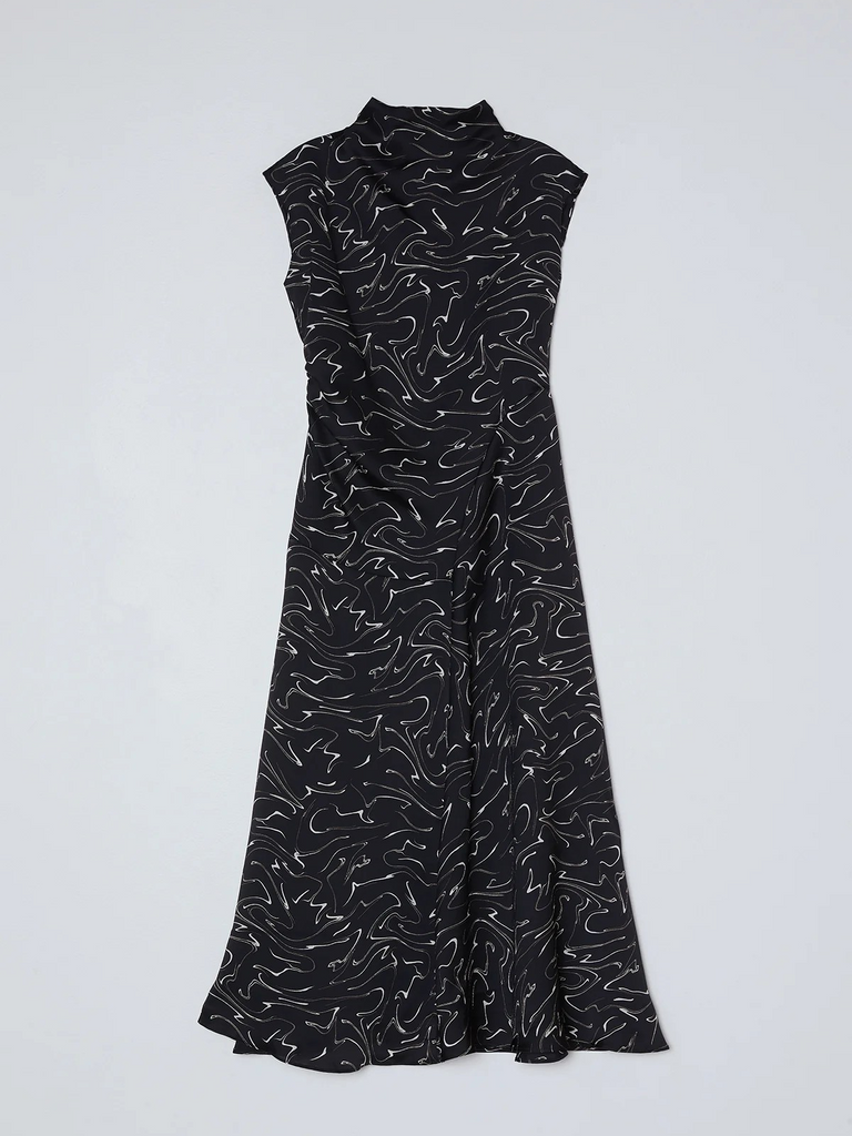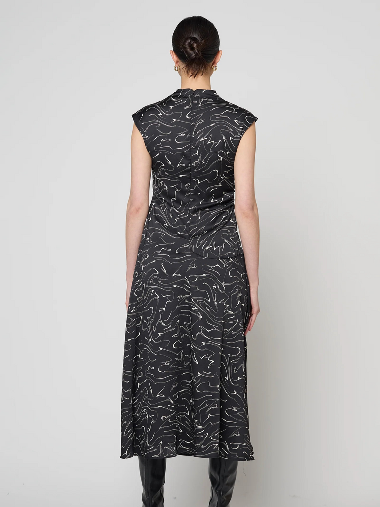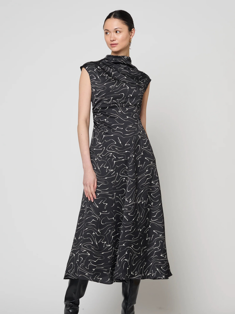 A sleeveless dress in their signature crinkled cupro, tailored body transitions into an asymmetrical flowy skirt. The Twisted Dress by Atelier Delphine is a classic and an all season wardrobe essential.