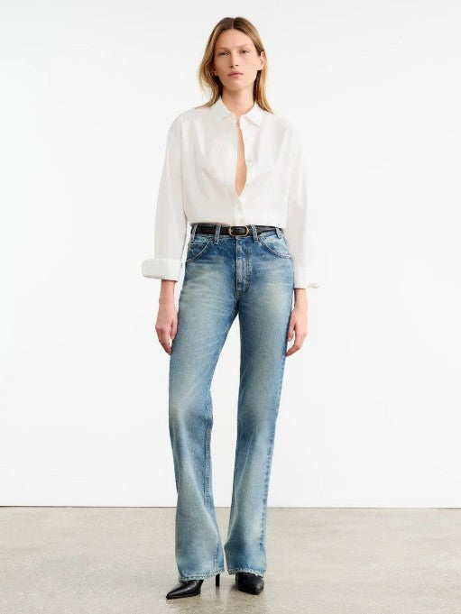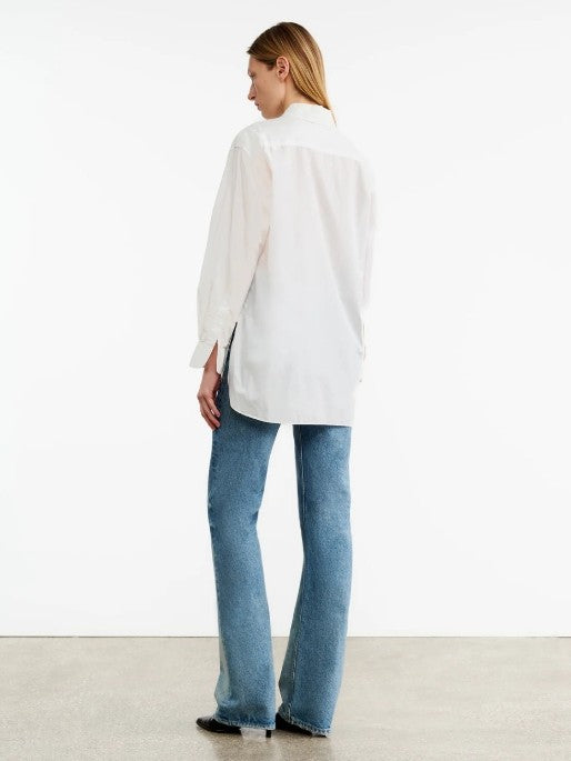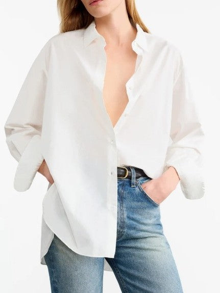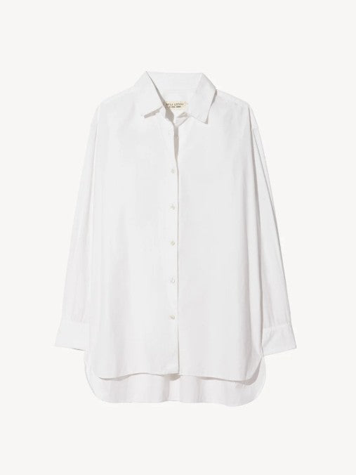 Oversized button down shirt by Nili Lotan in cotton. Center front placket. Cuff placket. Exaggerated shirttail hem.