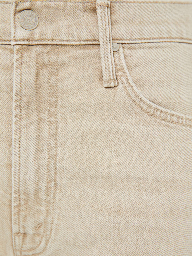Jeans by Mother Denim designed to sit on the hips with a zip fly, slouchy fit, loose straight leg and a 32-inch inseam with a clean hem. Made from semi-rigid SUPERIOR denim, Caramel is a faded khaki with tan stitching.