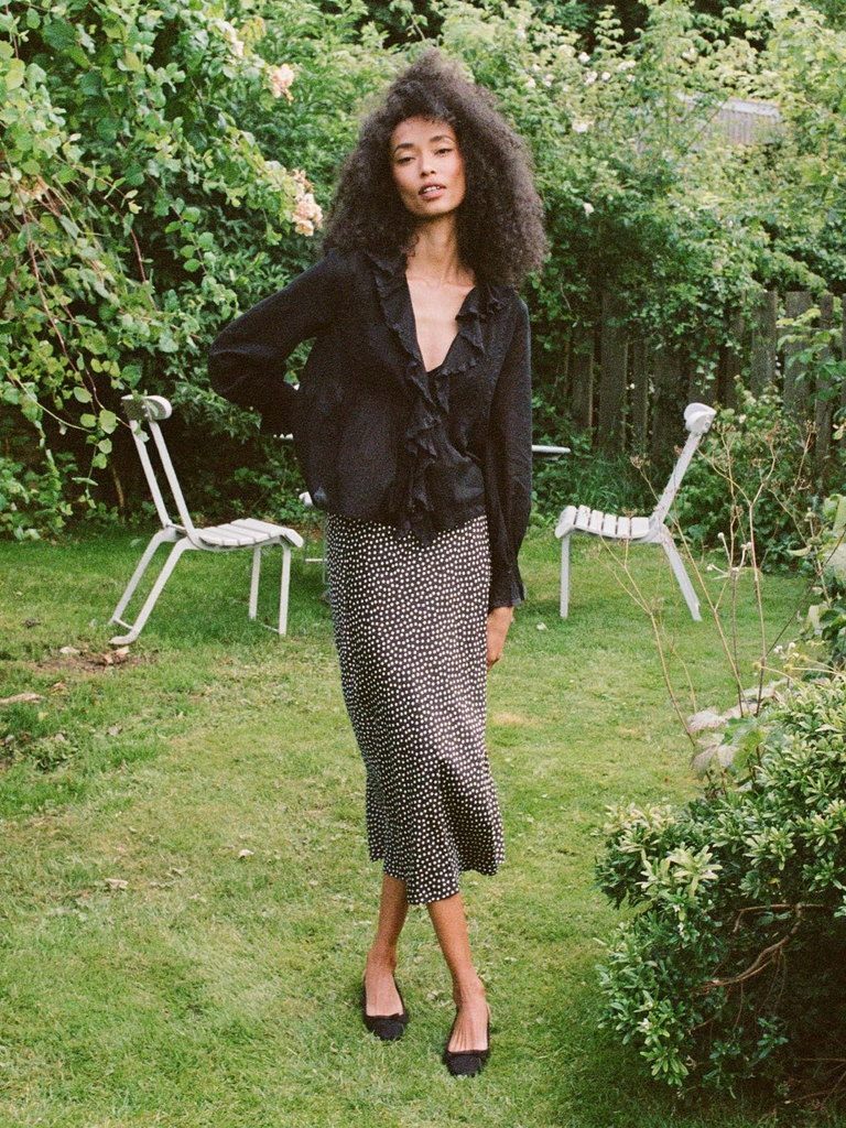 Crafted from the softest 100% organic cotton voile, the Hardy Top by DÔEN —a long-sleeved version of our beloved Henri Top—features a breezy cut, a plunging V-neckline framed with cascading lace-trimmed ruffles that extend down the bodice, hidden starburst buttons, and clustered pintucks at the yoke and back. Generous full-length sleeves finish in lace-trimmed ruffles at the cuffs. Wear it loose, or tuck it into your favorite high-waisted jeans.