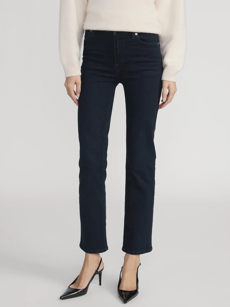 The ultimate high-rise, straight-leg jean by FRAME, crafted from super-stretch denim. Hits at the ankle for a polished look that dresses up or down with ease.