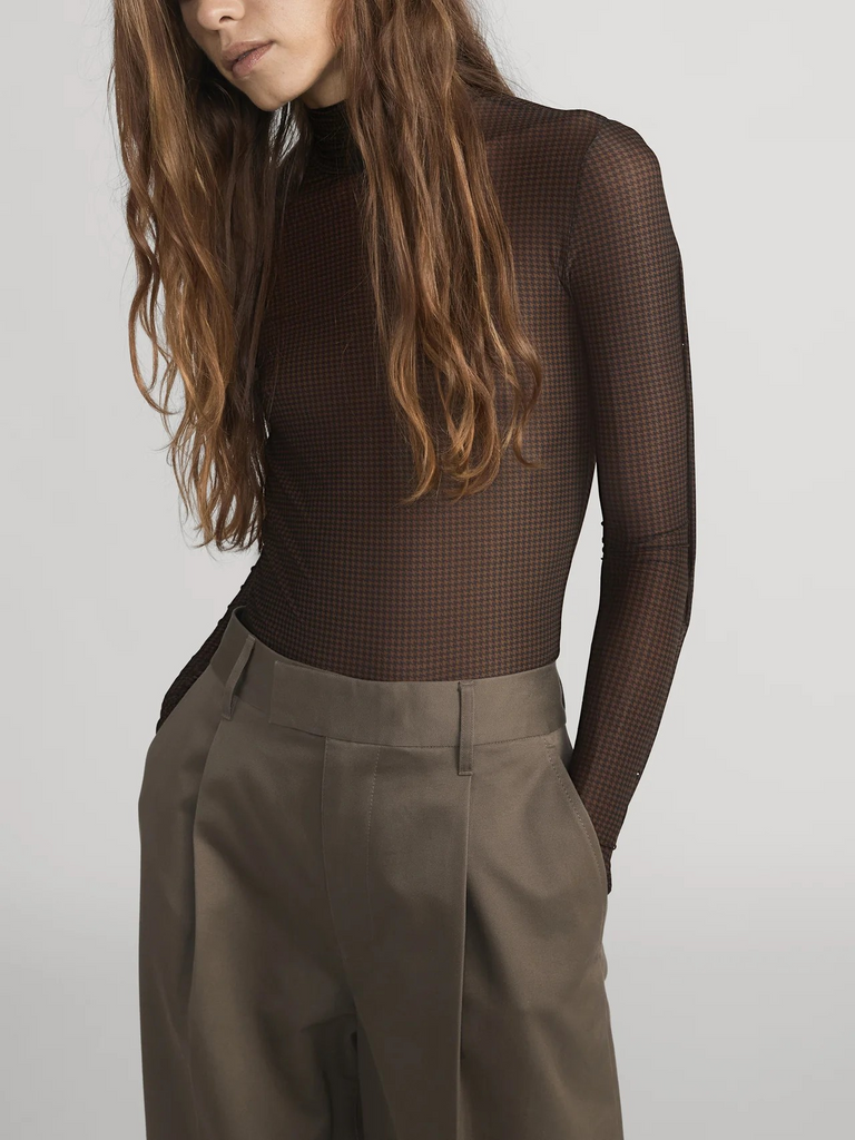 A play on the classic turtleneck, this lightweight, semi-sheer layer by FRAME brings a cool textural element to any ensemble. Sexy on its own, The Hosiery Turtleneck also makes a polished layer under a sweater or blazer. Size down for a more sheer, fitted look.