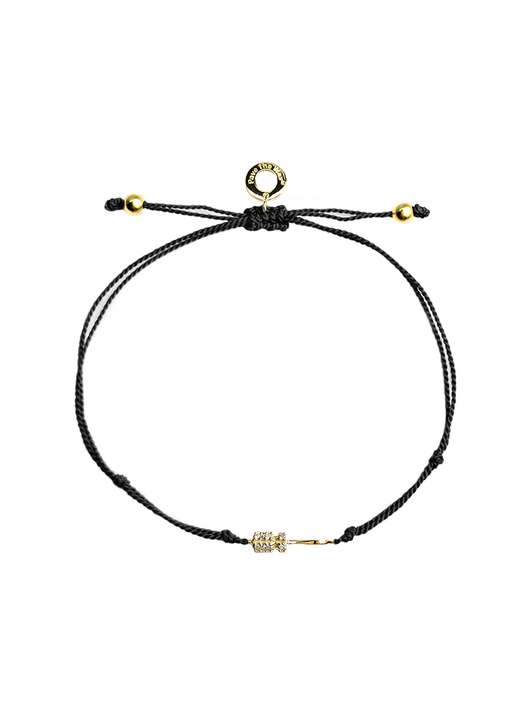 Bracelet featuring a diamond pavé screwdriver on a silk cord.