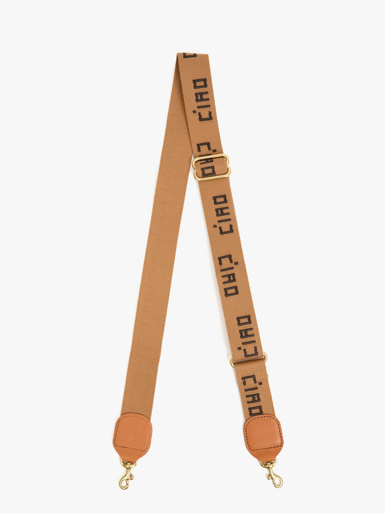 - Cotton/nylon webbing, leather trim, and brass snap hooks