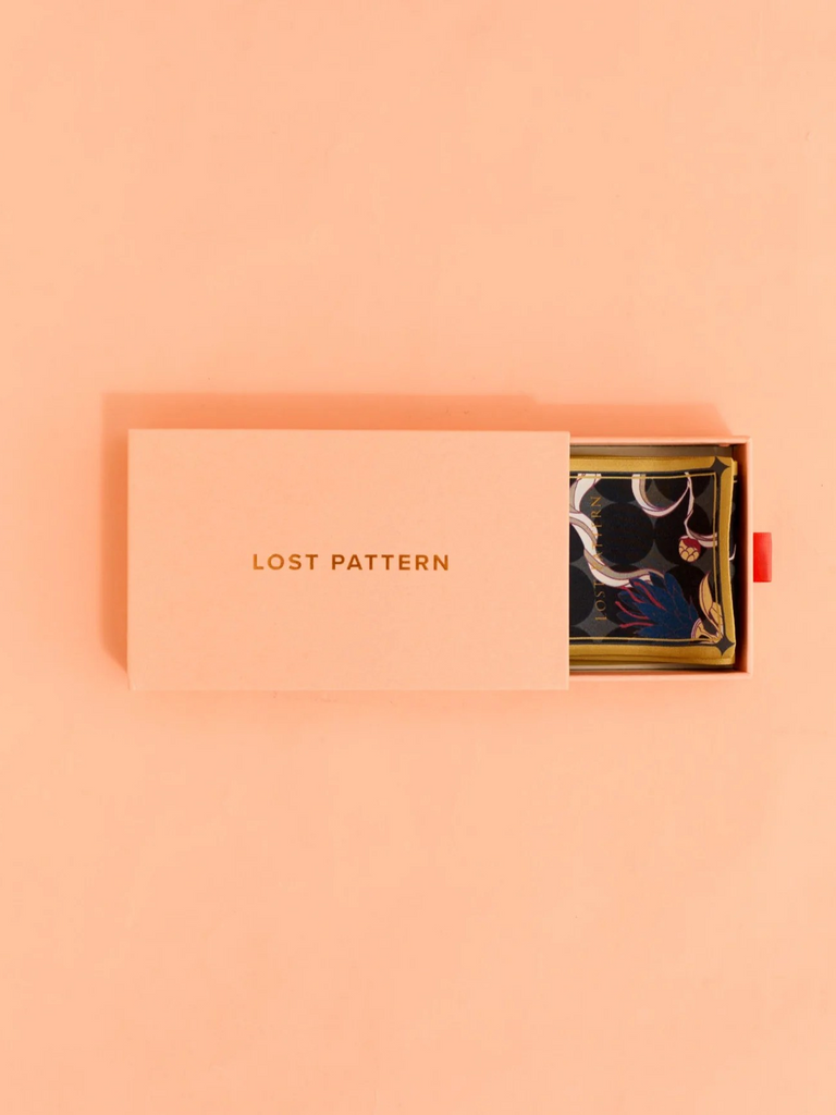 Never underestimate the power of a silk headband scarf to be stylish and cool at the same time. This twill scarf is a perfect choice for a silk head scarf. The pattern in black grasps us to the ethereal and mysterious nature of the fictional world we dive into when we read a book and transports us to a different dimension.