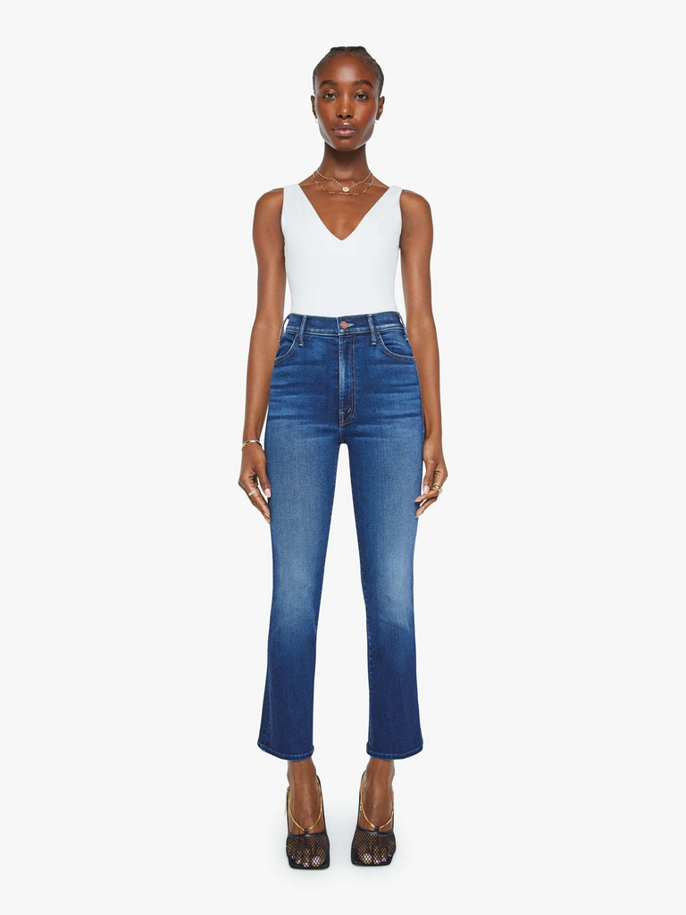 Rules are meant to be broken. This high-rise flare by Mother has an ankle-length inseam and a clean hem. Made from stretch denim, Coloring Outside The Lines is a deadstock-inspired dark blue.