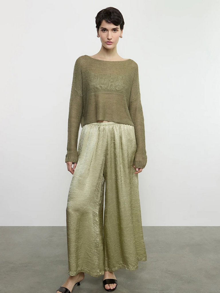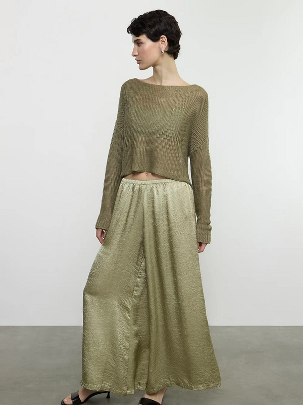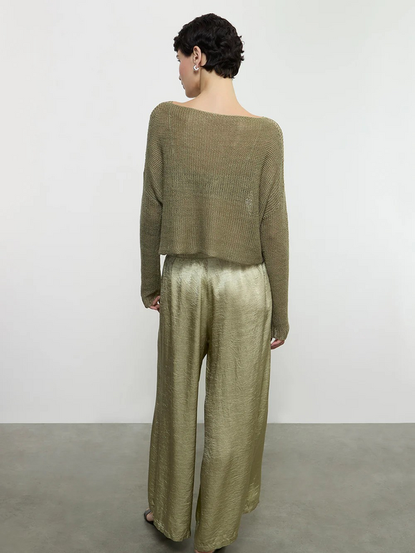 An open-knit pure linen sweater by Enza Costa with a classic bateau neckline and waist-length cut. Relaxed fit through the body.