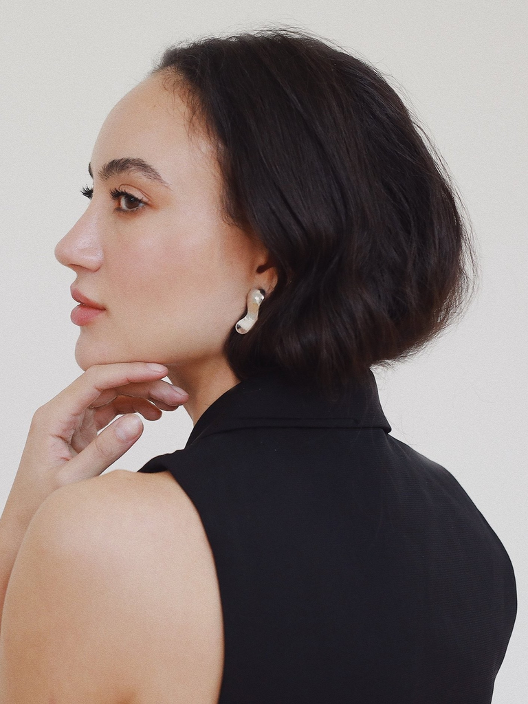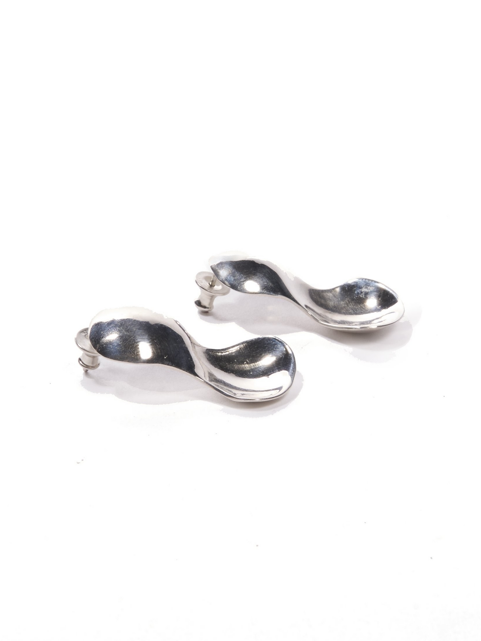 Curvy earrings by Odette that catch the light, hand-formed from wax before being cast in Sterling Silver. Sold as a pair.