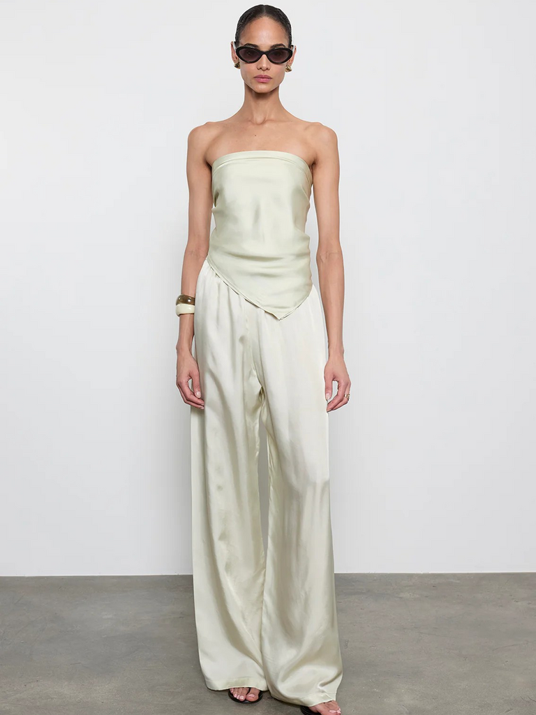 Relaxed pull-on pant in woven silky twill by Enza Costa. Elastic waistband.