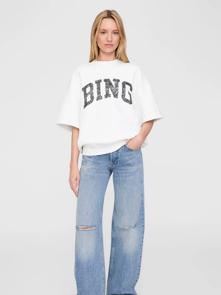 The Jay Sweatshirt Bing is a short-sleeve crewneck pullover made from midweight 100% cotton French terry in off white.