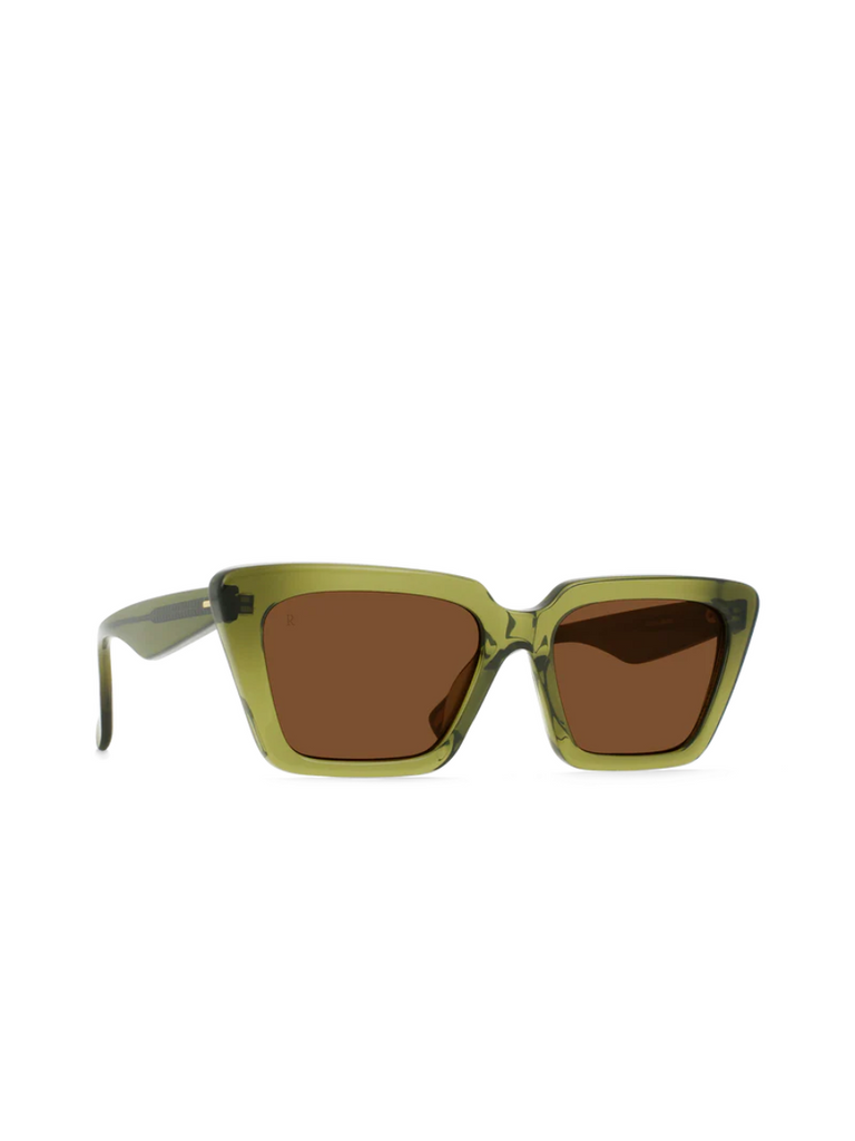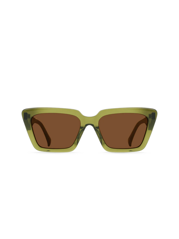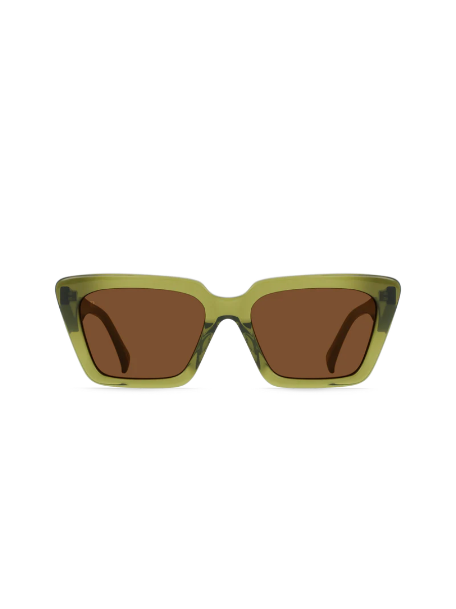 Keera® by Raen stands out from the crowd with exaggerated angles and a blocky acetate design. The fin-like temples provide a distinctive upswept look that falls somewhere between a cat-eye and 90s rectangular frames.