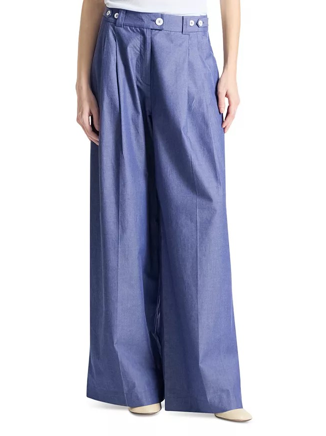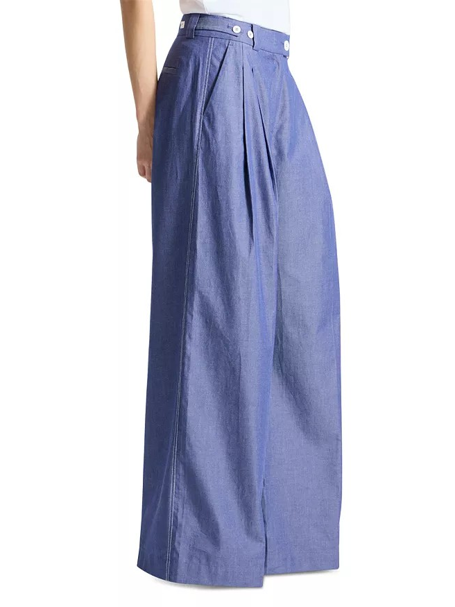 The Kingsley Pant by Saint Art features a wide-leg silhouette, two front slant pockets; two faux back welt pockets and pleats at top of leg.