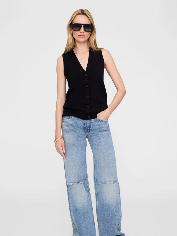 A classic sweater vest crafted by Anine Bing from a lightweight merino-silk blend with ribbed structure throughout