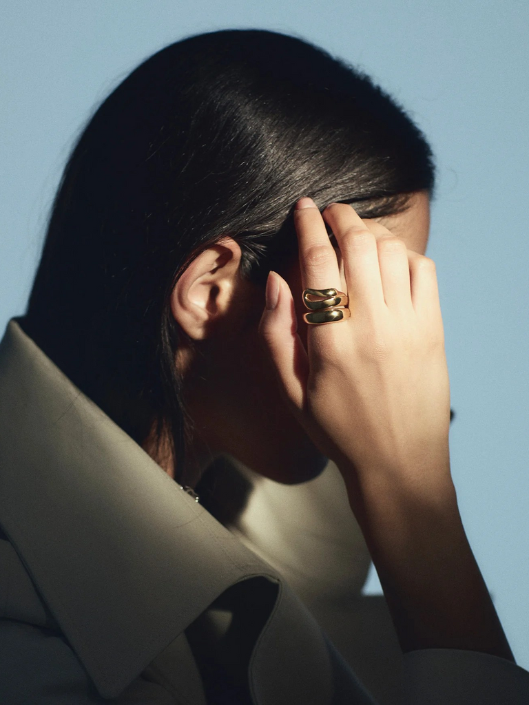 The elongated profile of the egret bird nestles into a chunky, bold shape and wraps around your finger. Finished in high-polish gold. Size 7.