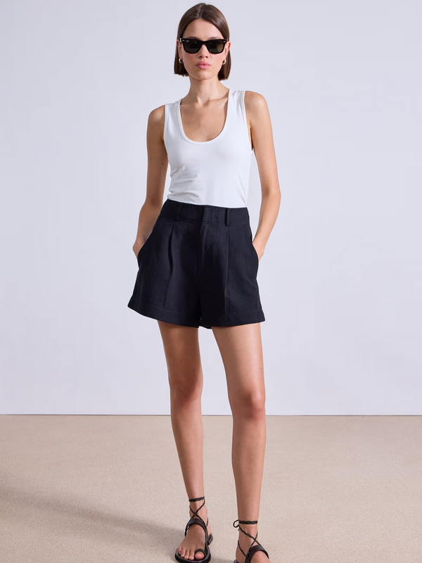 Designed by Apiece Apart with a fitted, flattering silhouette and made to pair with essential tees and flowy printed tops. Crafted from a soft cotton/linen blend.