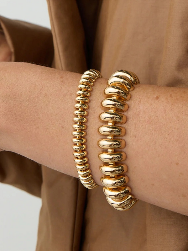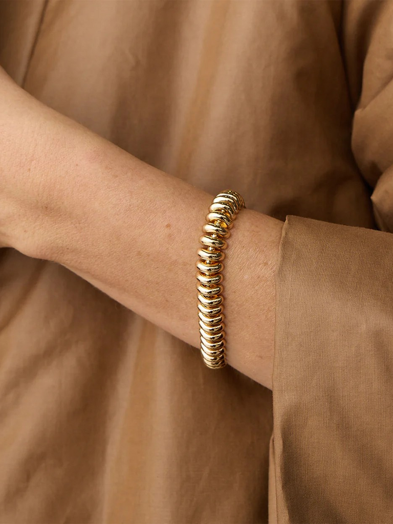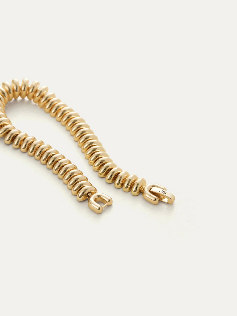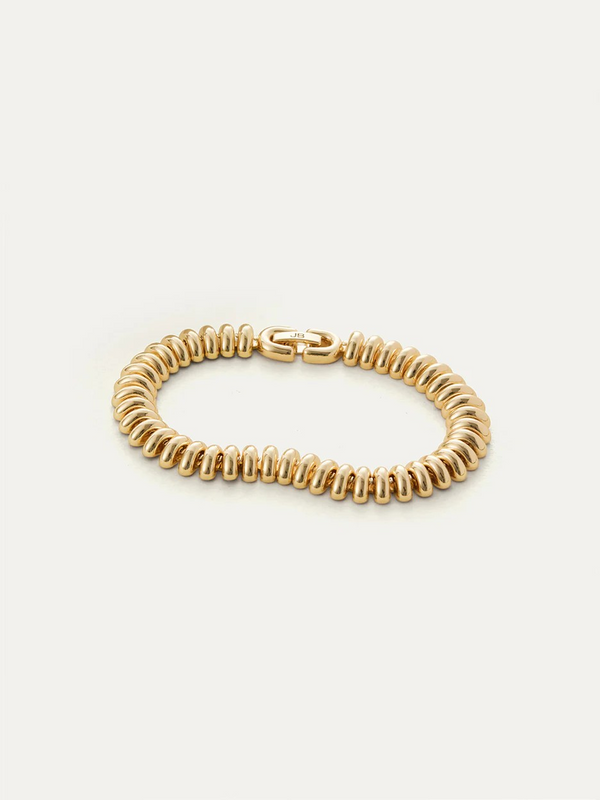 A gorgeously fluid chain bracelet that boasts a ribbed texture through a unique caterpillar construction. Vintage-inspired foldover closure, finished in high-polish 14k gold.