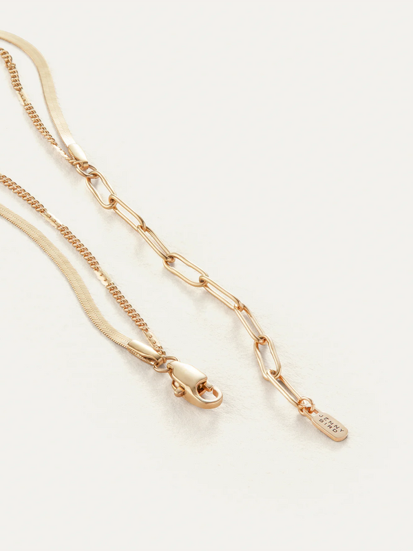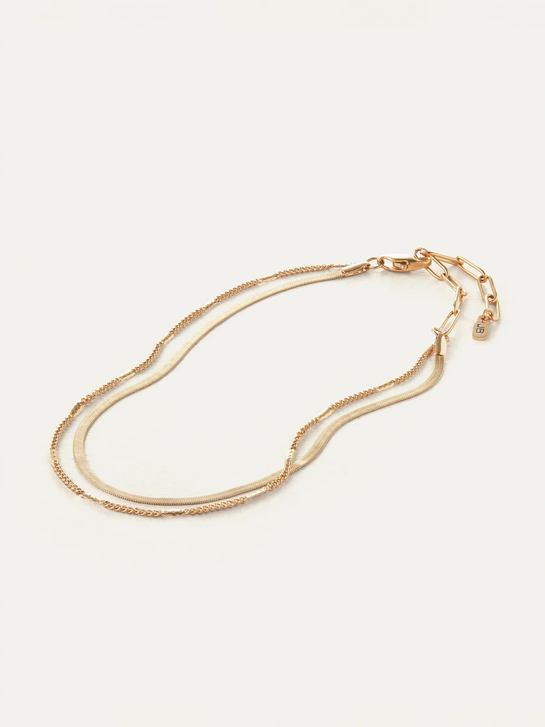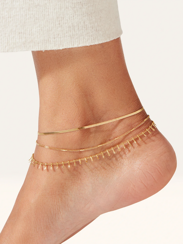 The look of an anklet stack in one easy-to-wear, water-resistant design. The Surfside Anklet boasts a slinky herringbone snake chain and is paired with a stamped curb chain for modern, textural interest. Finished in high-polish gold.
