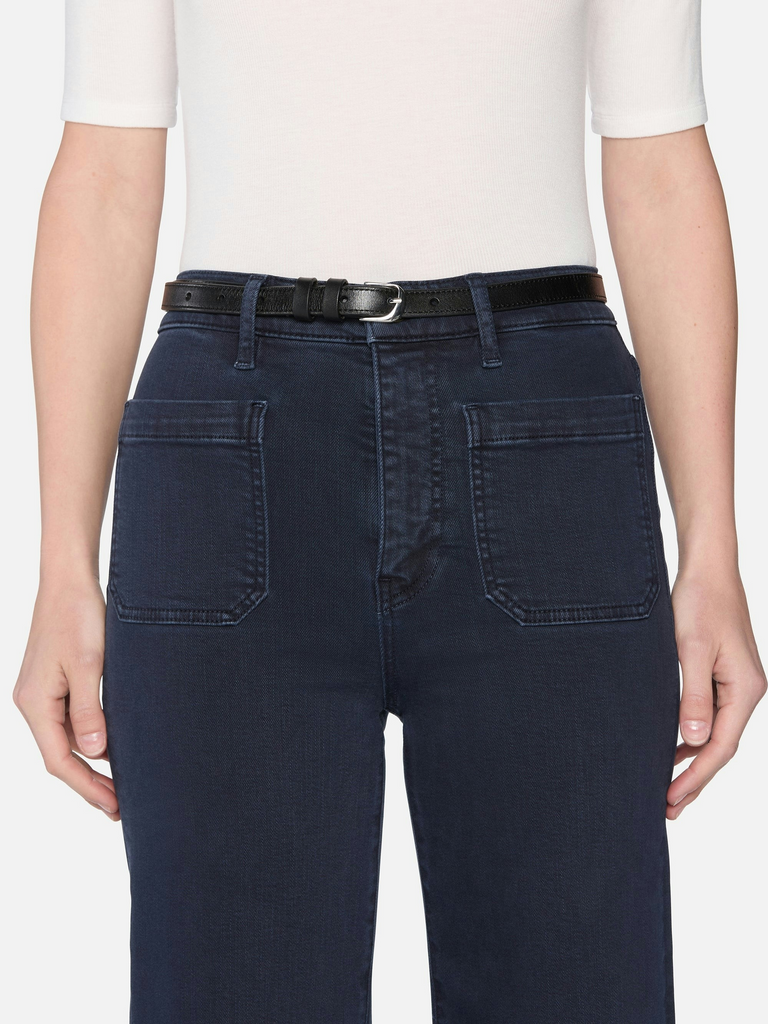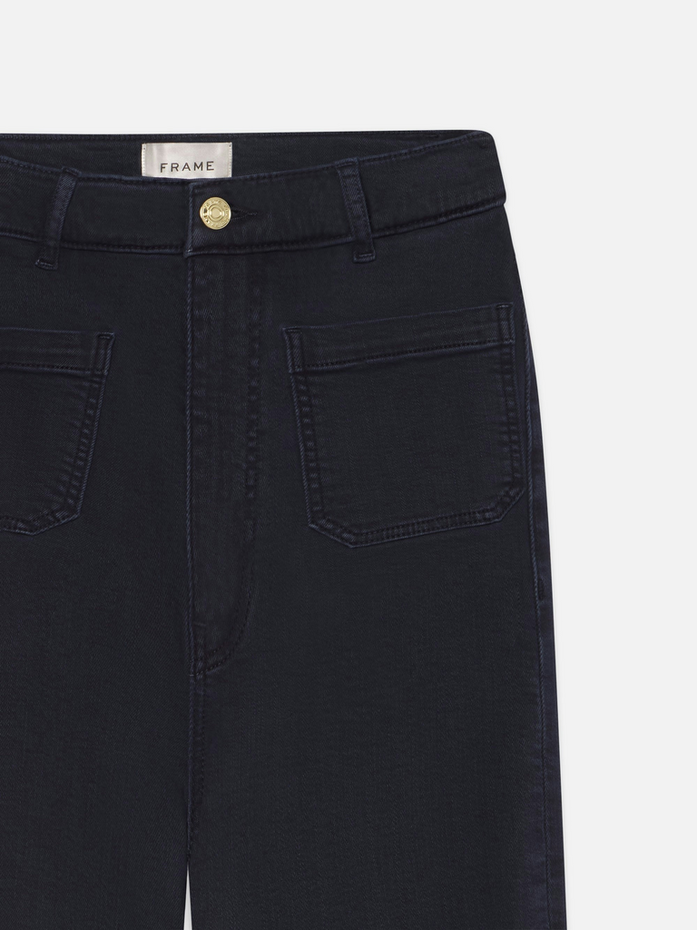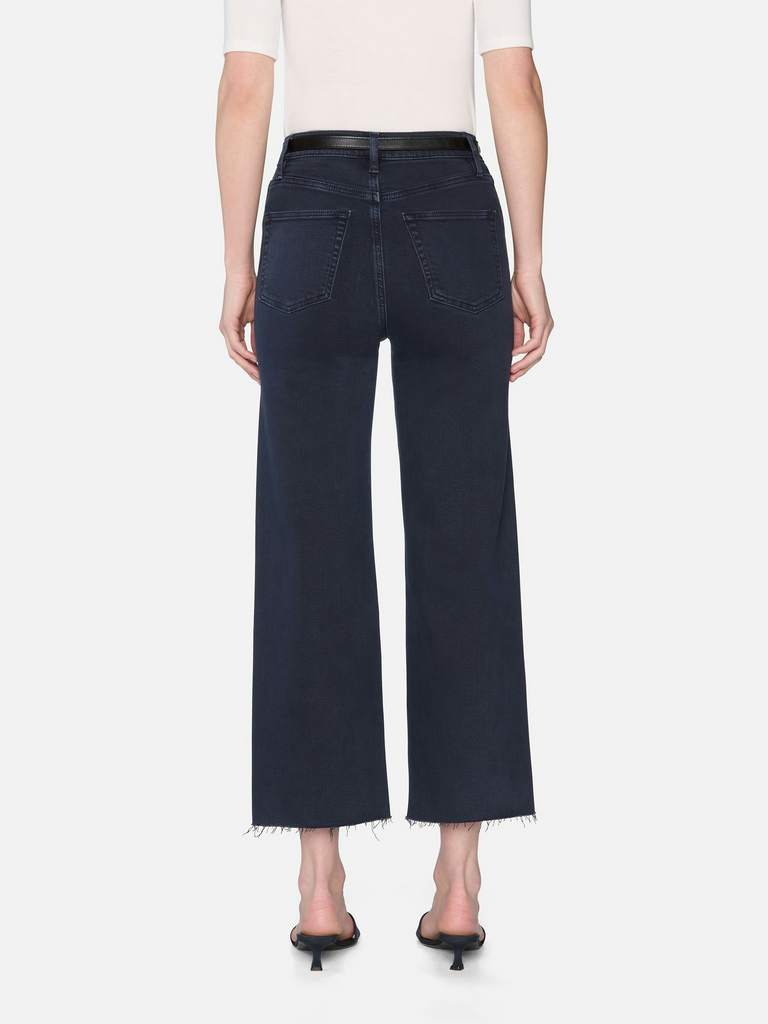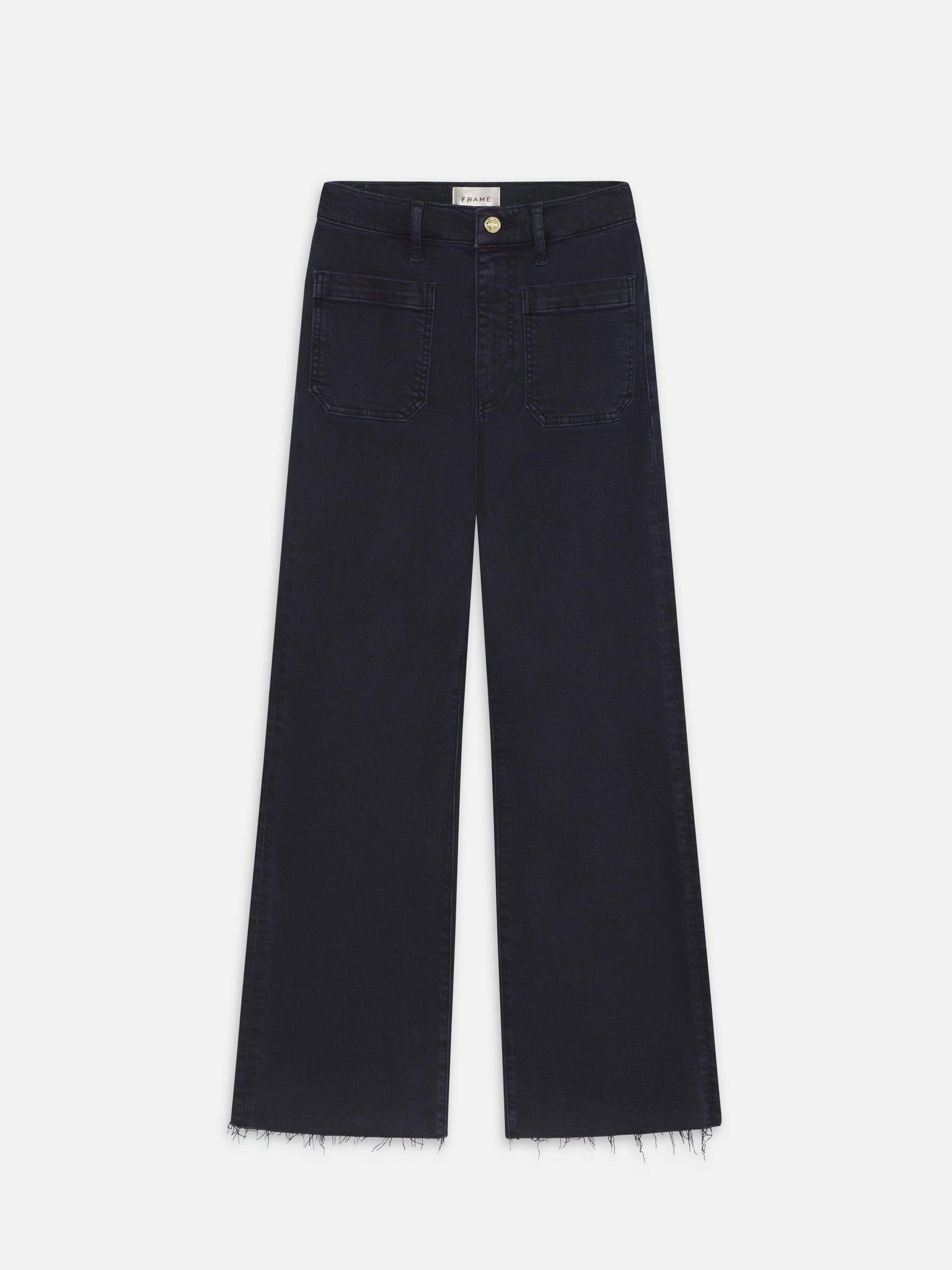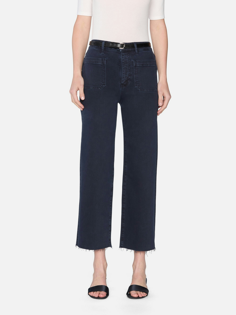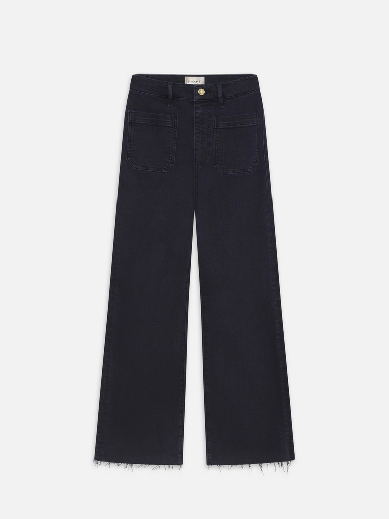 Tailored, with a twist. The Anchor Pant by Frame features front patch pockets, a cropped inseam, and a subtle wide leg. The deep navy wash and raw, frayed hem enhance this super stretch silhouette.