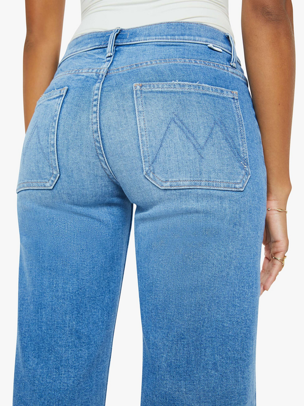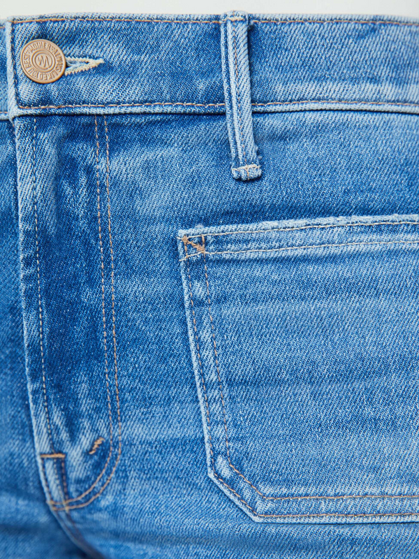 Grow your own way. Mid-rise jeans by Mother with a loose fit, wide leg, patch pockets and ankle-length inseam with a clean hem. Cut from stretch denim, Avant Gardener is a mid-blue with whiskering and fading at the knees.