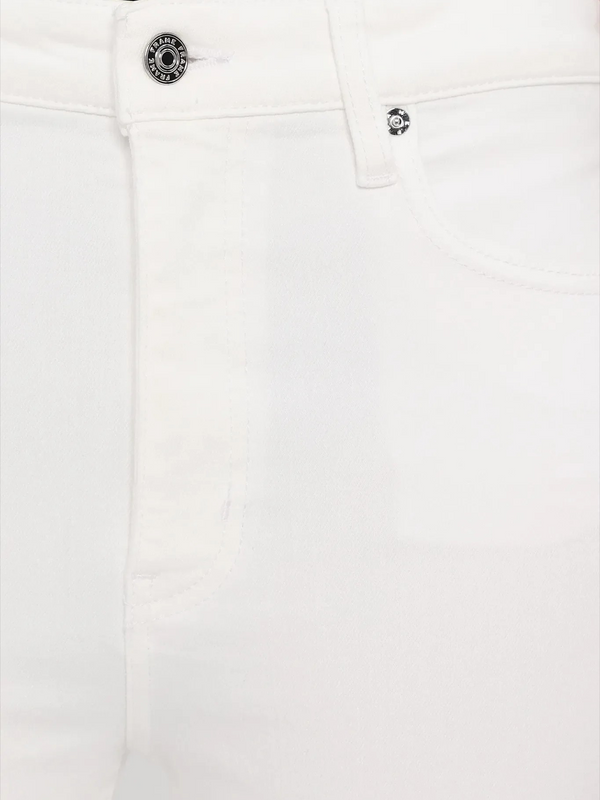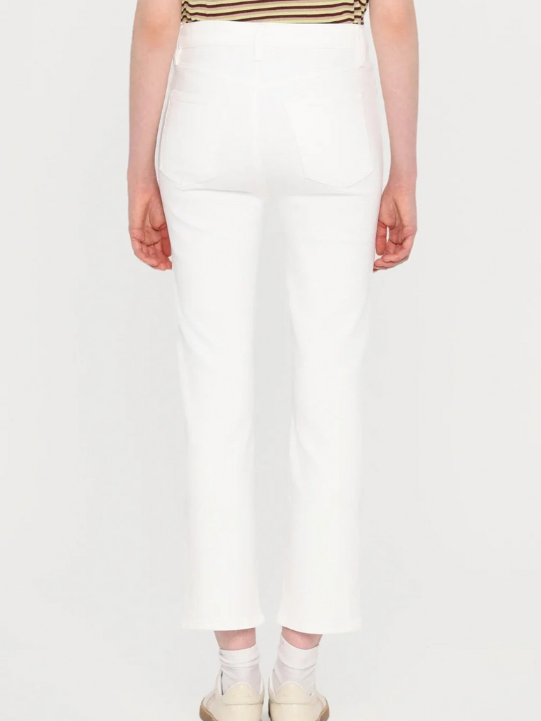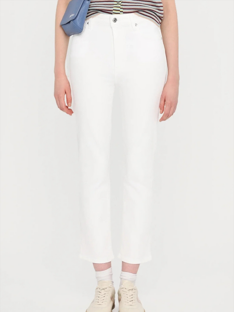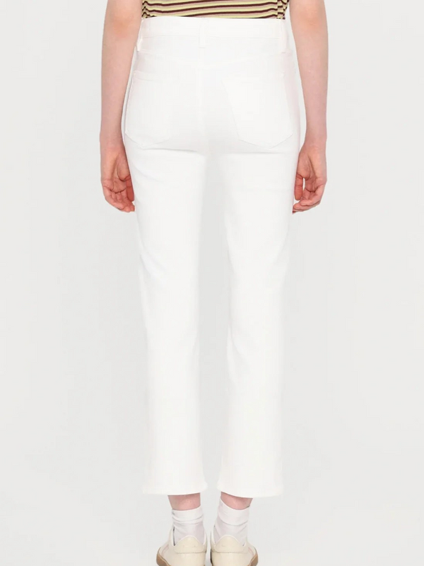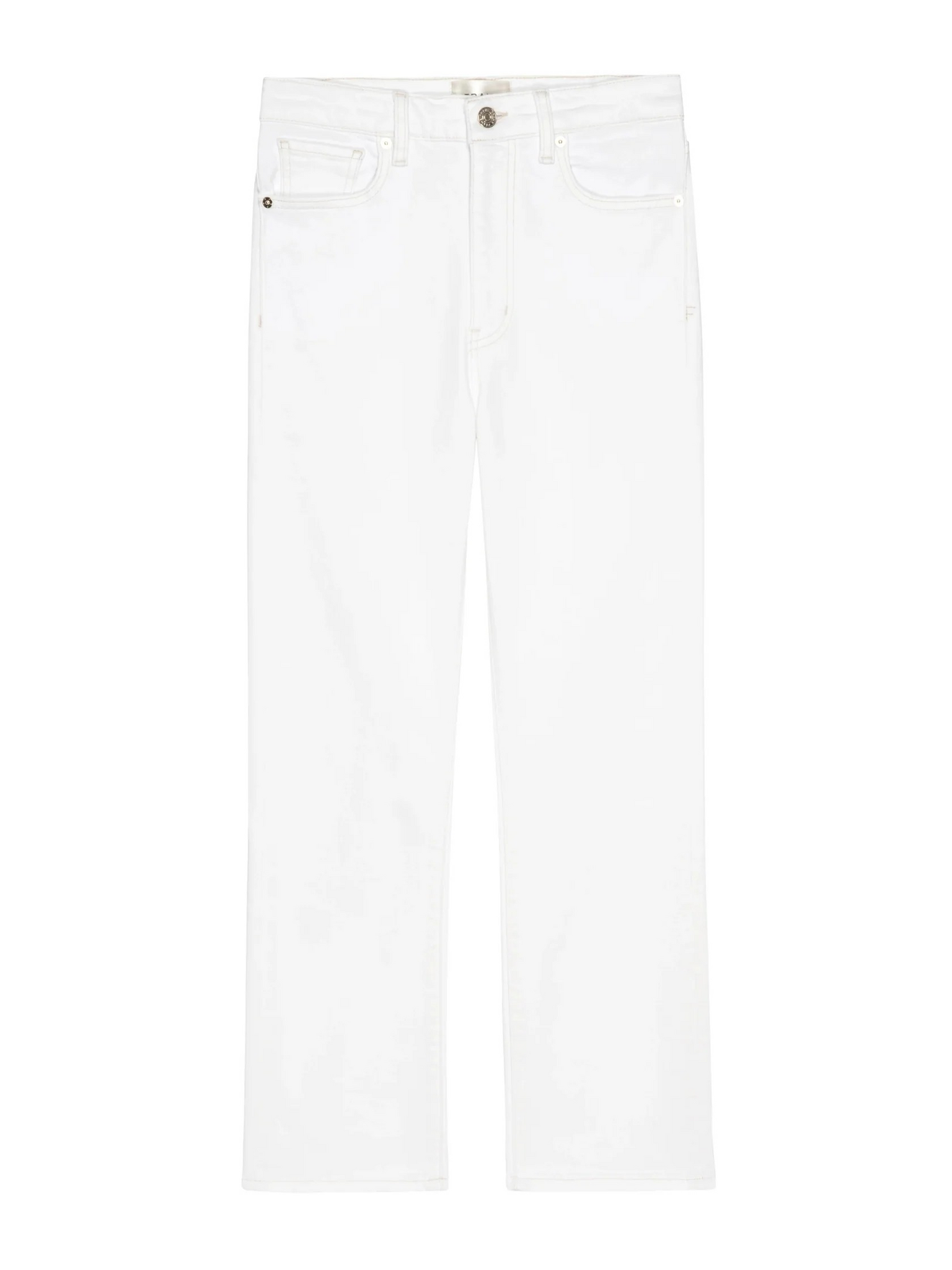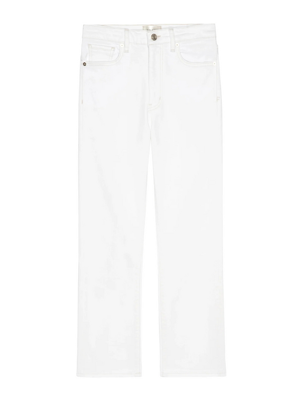 The Pencil Crop by Frame is a modern update on the classic straight leg jean, now in a shorter 27" inseam. Slim through the hip and thigh, it flows into a sleek, streamlined silhouette. Crafted from ultra-soft, super-stretch denim with a touch of vintage appeal.