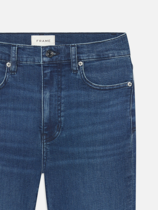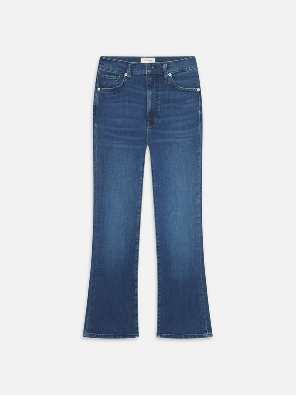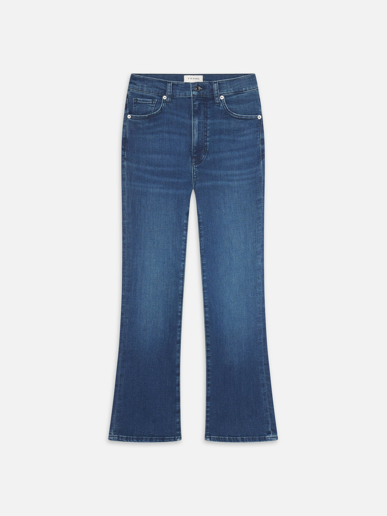 A cropped inseam takes our new Reboot jean by Frame up a notch, finishing in a soft bootcut that hits above the ankle. The dark blue jean is cut in an ultra stretchy cotton blend for comfortable, all-day wear.