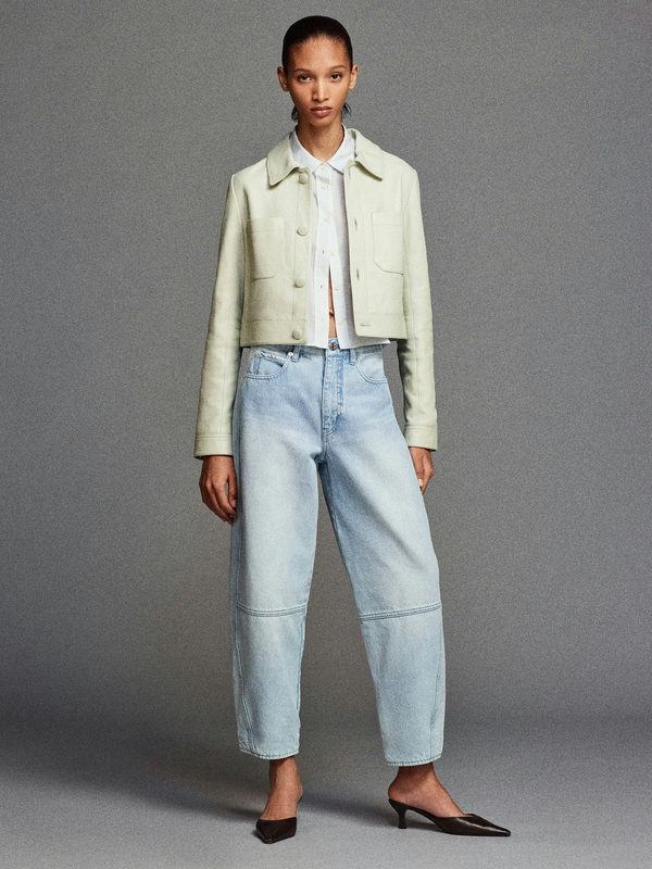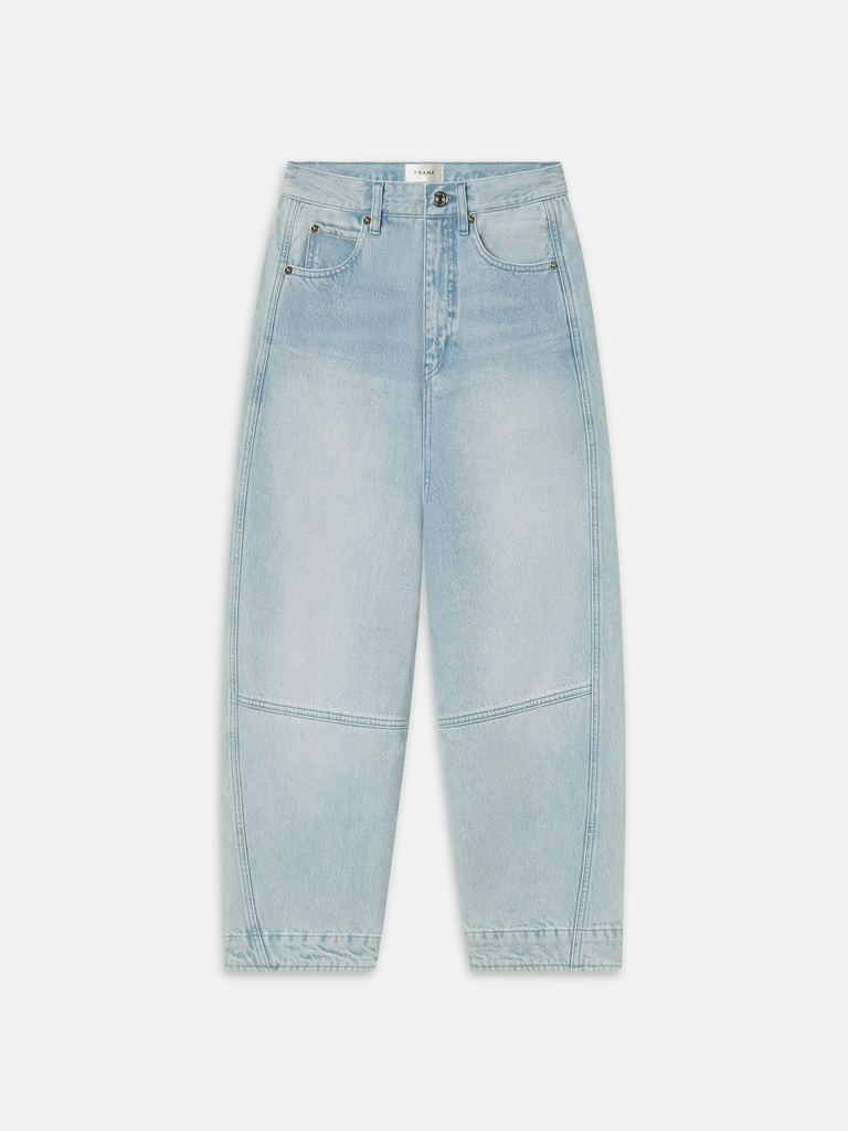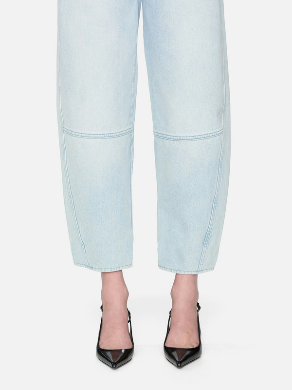 A mid-rise jean with an artful curve. The Twisted by Frame in light blue features a sculpted outseam, utility-inspired knee seaming, and an ankle-length inseam. Crafted from 100% regenerative cotton that wears in with time and character.